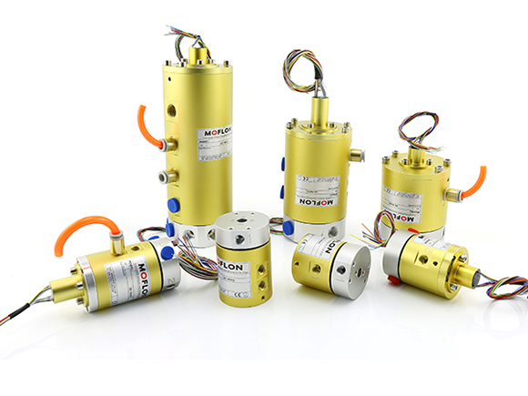 滑環(huán) ,就是負(fù)責(zé)為旋轉(zhuǎn)體連通、輸送能源與信號(hào)的電氣部件。根據(jù)傳輸介質(zhì)來(lái)區(qū)分,滑環(huán)分為電滑環(huán)、流體滑環(huán)、光滑環(huán),也可通俗的統(tǒng)稱為“旋轉(zhuǎn)連通”或“旋通”。滑環(huán)通常安裝在設(shè)備的旋轉(zhuǎn)中心,主要由旋轉(zhuǎn)與靜止兩大部分組成。旋轉(zhuǎn)部分連接設(shè)備的旋轉(zhuǎn)結(jié)構(gòu)并隨之旋轉(zhuǎn)運(yùn)動(dòng),稱為“轉(zhuǎn)子”,靜止部分連接設(shè)備的固定結(jié)構(gòu)的能源,稱為“定子”。 了解更多>>