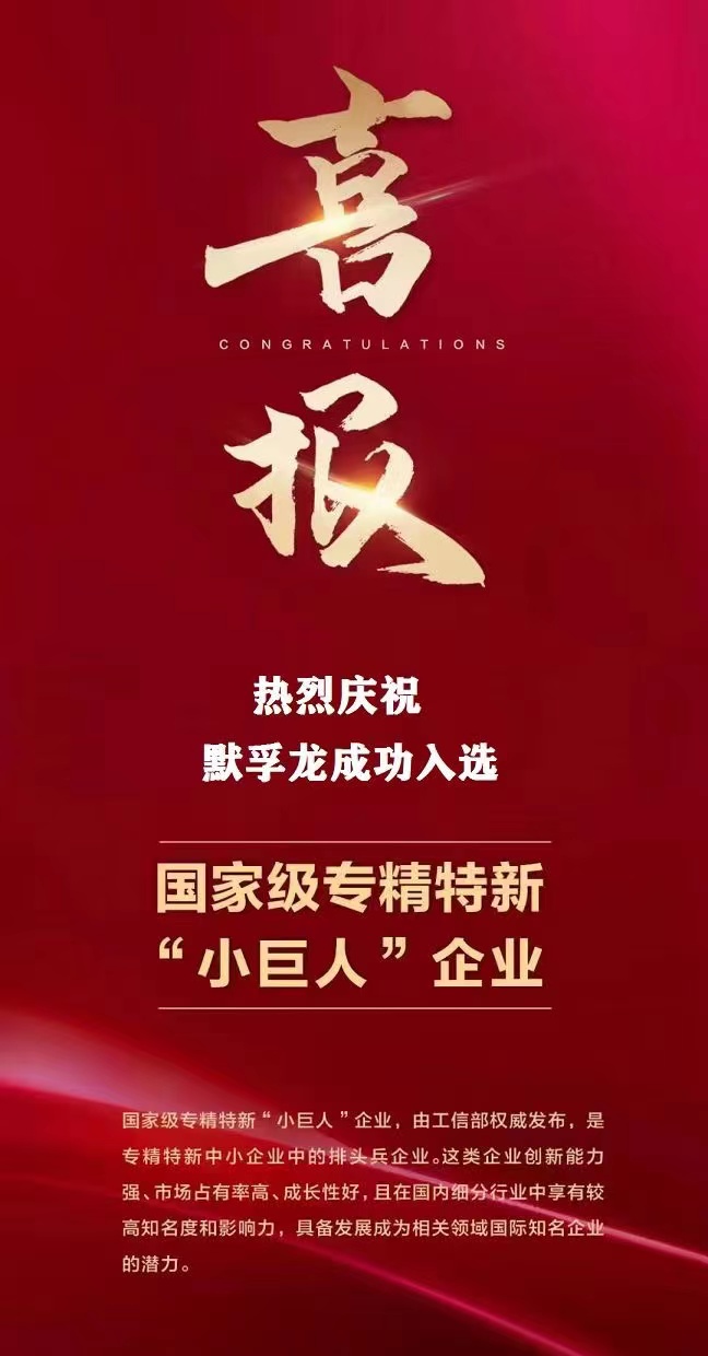喜報|熱烈慶祝默孚龍獲評國家專精特新“小巨人”企業