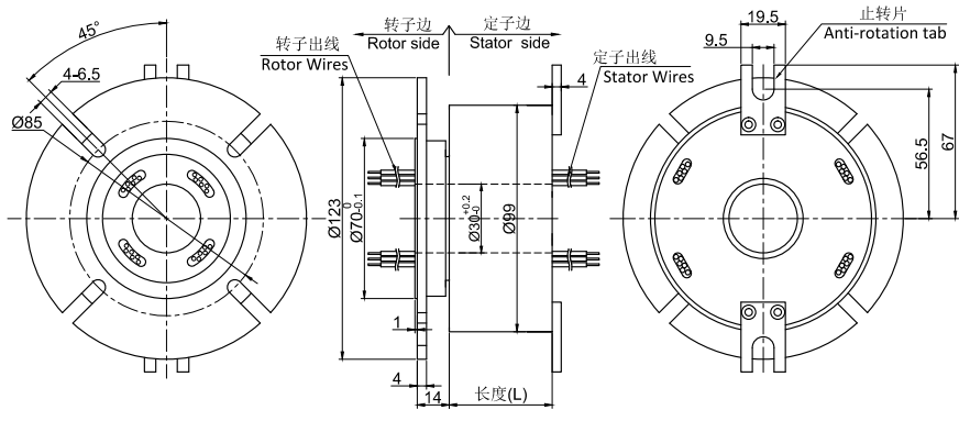 GT3099F系列整體式精密導電滑環,主要應用于360度連續旋轉且需要保證電源,信號不能中斷的場合:多用于包裝機械、自動化機床、涂布機、自動鎖螺絲機、槍刺地毯機器人、智能磨削機器人、拋光機、智能倉儲機器人、 電纜卷軸、壓模機、離心機、倉儲物流車、噴涂設備等任意需要360°旋轉導電或傳輸各種控制信號的裝置。