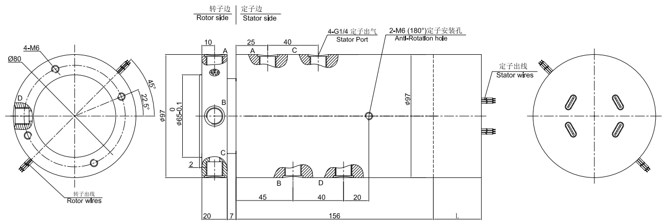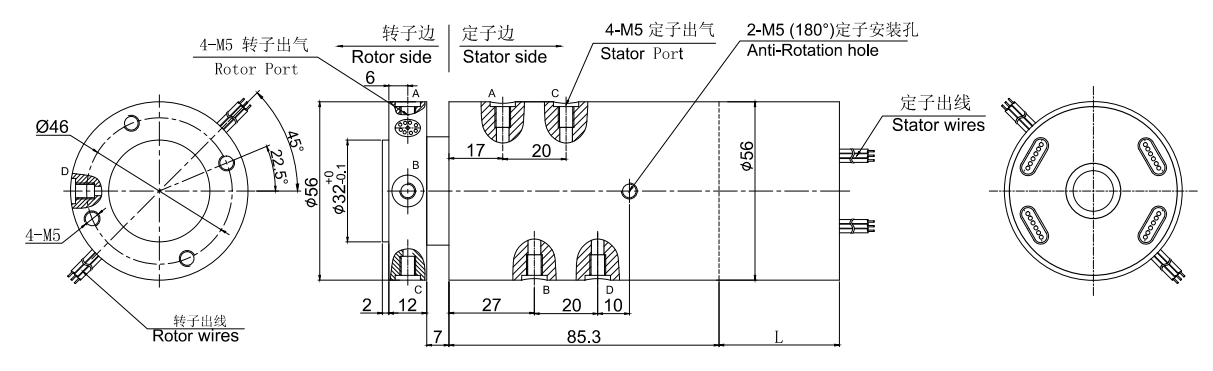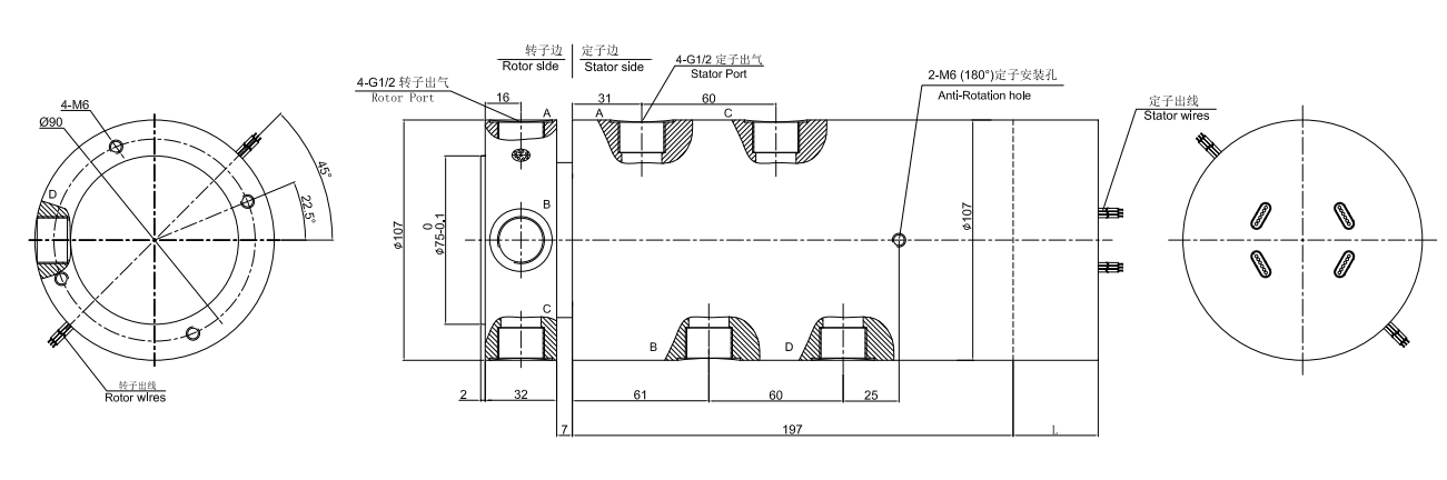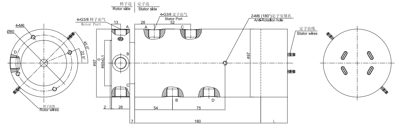 • · 標(biāo)準(zhǔn)為法蘭安裝形式,4進(jìn)4出旋轉(zhuǎn)接頭,4路氣液旋轉(zhuǎn)接頭,氣液電組合滑環(huán)可定制空心軸安裝