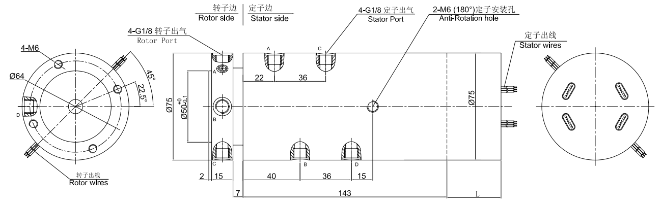 注:10A和信號(hào)(5A) 可以任意組合,最大可到96路,詳細(xì)請(qǐng)咨詢客服。4進(jìn)4出旋轉(zhuǎn)接頭,4路氣液旋轉(zhuǎn)接頭,氣液電組合滑環(huán)可在標(biāo)準(zhǔn)產(chǎn)品上進(jìn)行非標(biāo)定制,請(qǐng)咨詢客服。