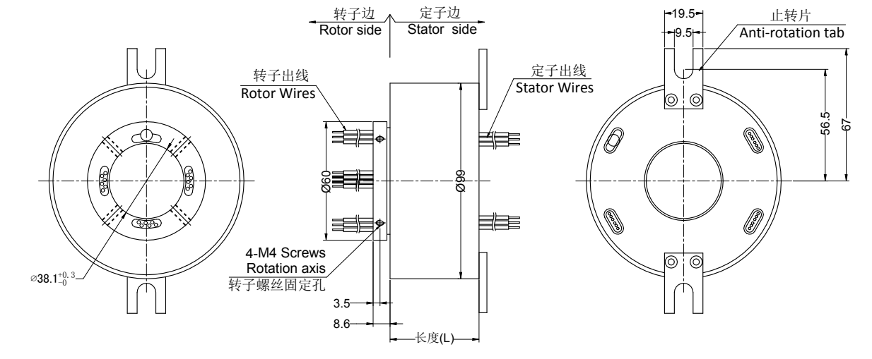 • · 工業總線滑環,RS422滑環,RS485導電滑環集電環通孔直徑為38.1mm(1",適用于<=38.1mm)的標準系列整體式精密工業總線滑環