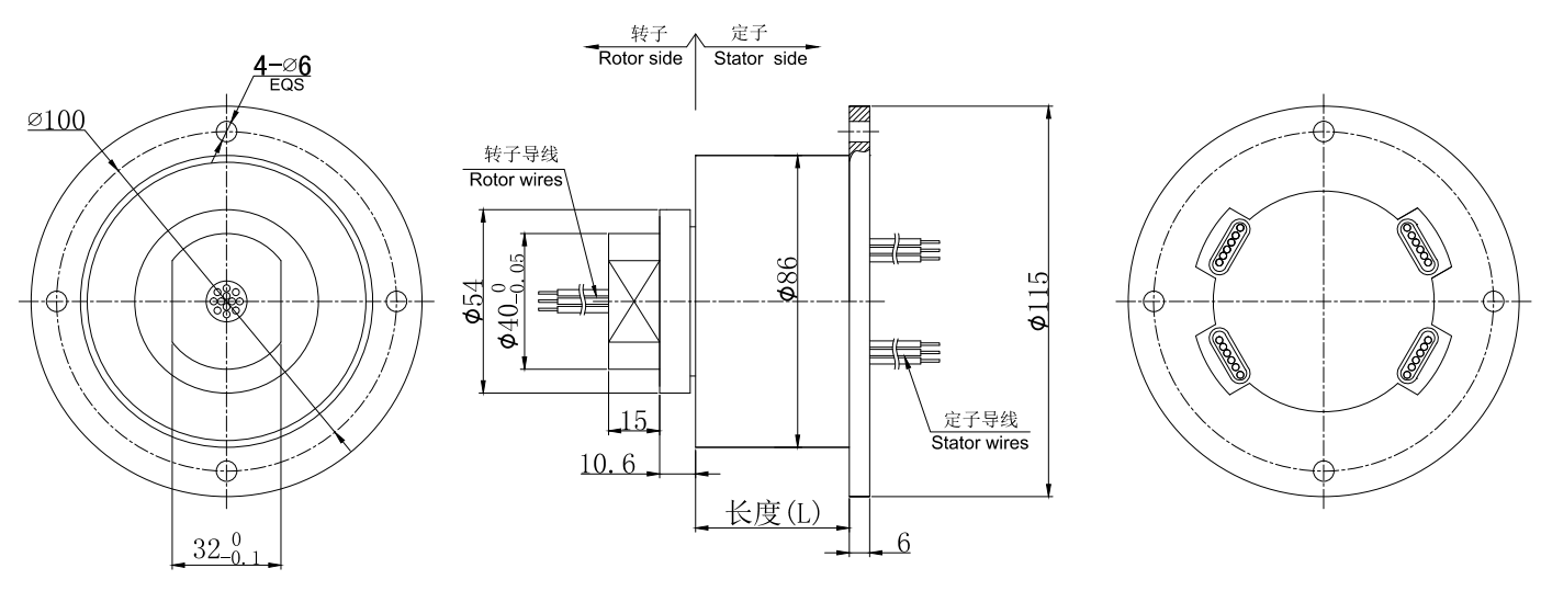 • · 實心滑環,中心無通孔, 適用于定子法蘭端面安裝