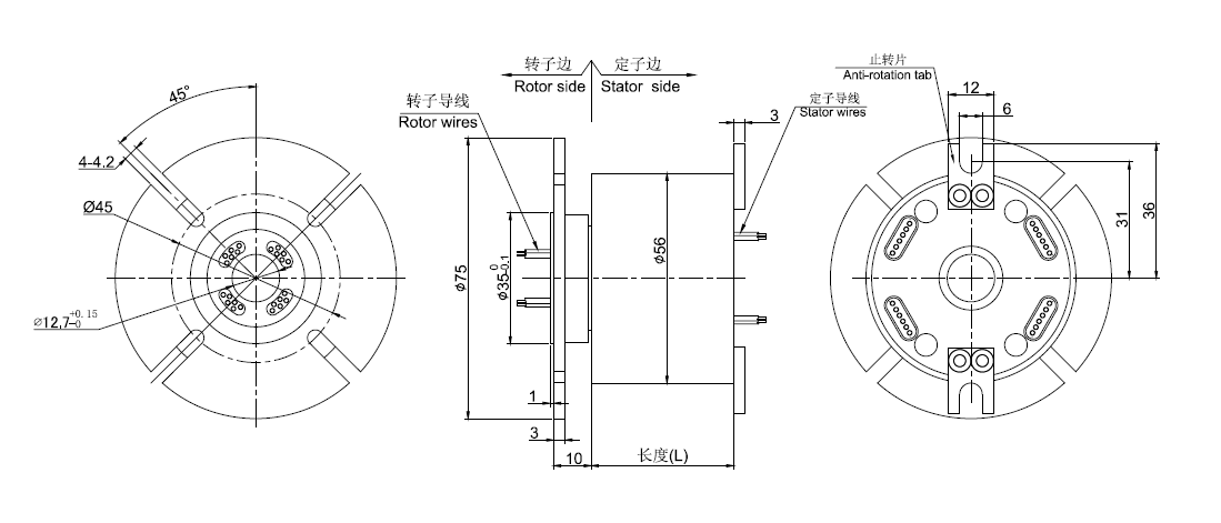 過孔式導電滑環是目前工業滑環里面性價比最高,最暢銷的一個系列產品,主要應用于360度連續旋轉且需要保證電源,信號不能中斷的場合:如各種雷達,安防設備,娛樂設備,各種機器人、機械手,各種浮空器,各種風力發電設備吹瓶機,燈檢機,各種轉臺,游樂游藝設備,虛擬3D,VR設備, 車載衛星天線,船載衛星電線,電纜卷筒,擦窗機設備,旋轉餐桌,旋轉舞臺,旋轉屏幕,旋轉餐廳,電動工程機械,最新的VR模擬仿真設備等。;