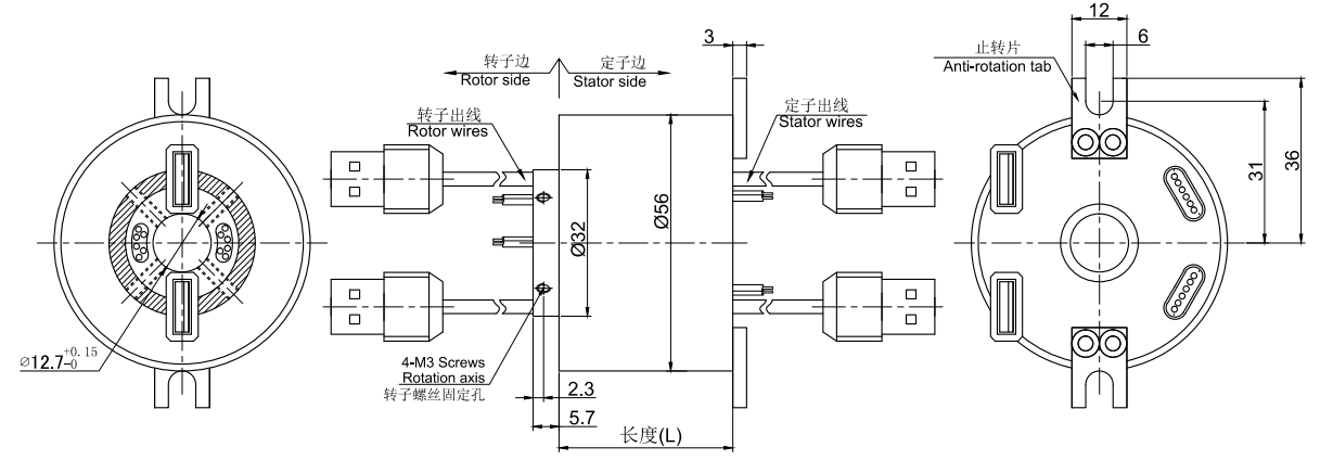 • · MUSB2122系列USB滑環,內孔12.7mm,外徑為標準56mm的緊湊型整體式結構的2通道 USB1.0/USB2.0整體式精密導電滑環,