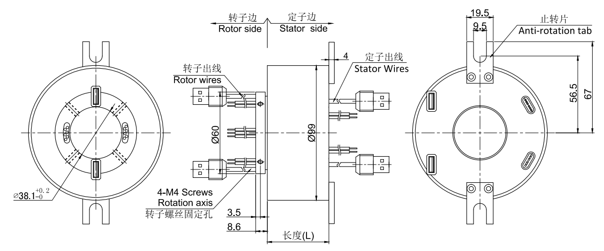 • · MUSB2382系列USB滑環,內孔38.1mm,外徑為標準99mm的緊湊型整體式結構的2通道 USB1.0/USB2.0整體式精密導電滑環,