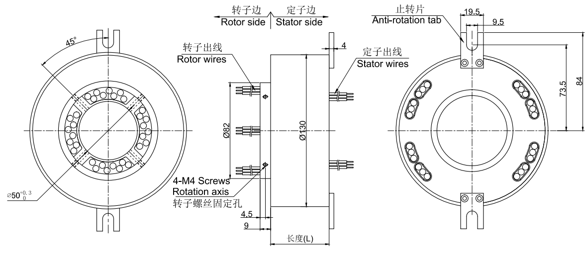 • · MW2050系列是內孔50MM的大電流通孔滑環,中空可用軸安裝或者過氣液導管。