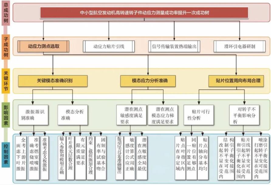 在開展中小型航空發動機動應力測量技術研究時,創新團隊針對試驗測量精度低、動應力測點失效、信號傳輸裝置損毀等故障現象,應用故障模式和影響過程分析(PFMEA)以及人為因素分析等方法,找到了能夠避免或減少這些潛在失效發生的措施,建立了循環反饋的動應力測量流程,在反復迭代中精準定位故障原因,尋求解決措施,主要從測點位置選取、動應力測量貼片引線技術研究、信號傳輸裝置熱端輸出方案設計、滑環引電器研制等方面實現技術突破。