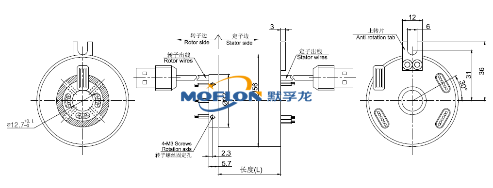 6. 默孚龍導電滑環轉定子端均安裝全封閉,防塵防水滾動軸承使壽命可以滿足大部分工業應用;